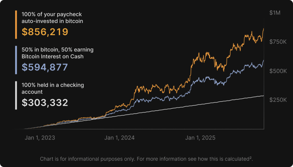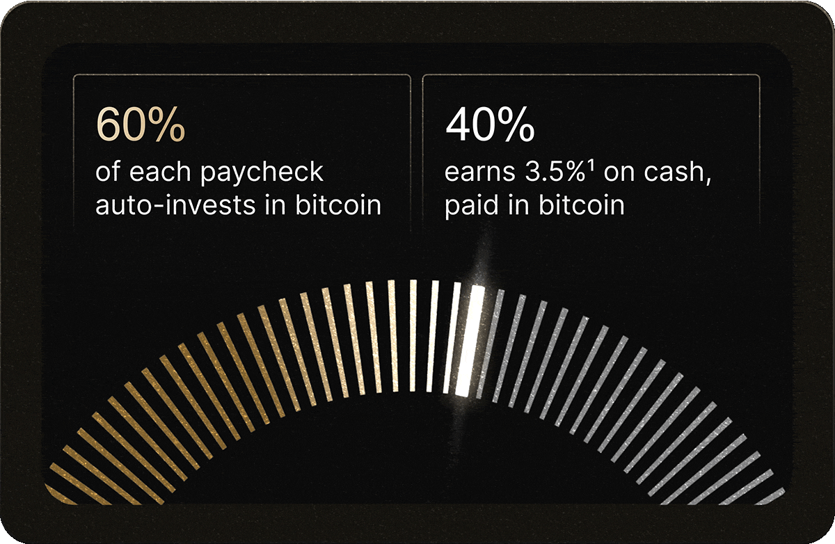 Now you have two ways to earn bitcoin with every paycheck. Auto-invest any part of it in bitcoin with zero fees, and any cash you keep earns our current interest rate1, paid in bitcoin.